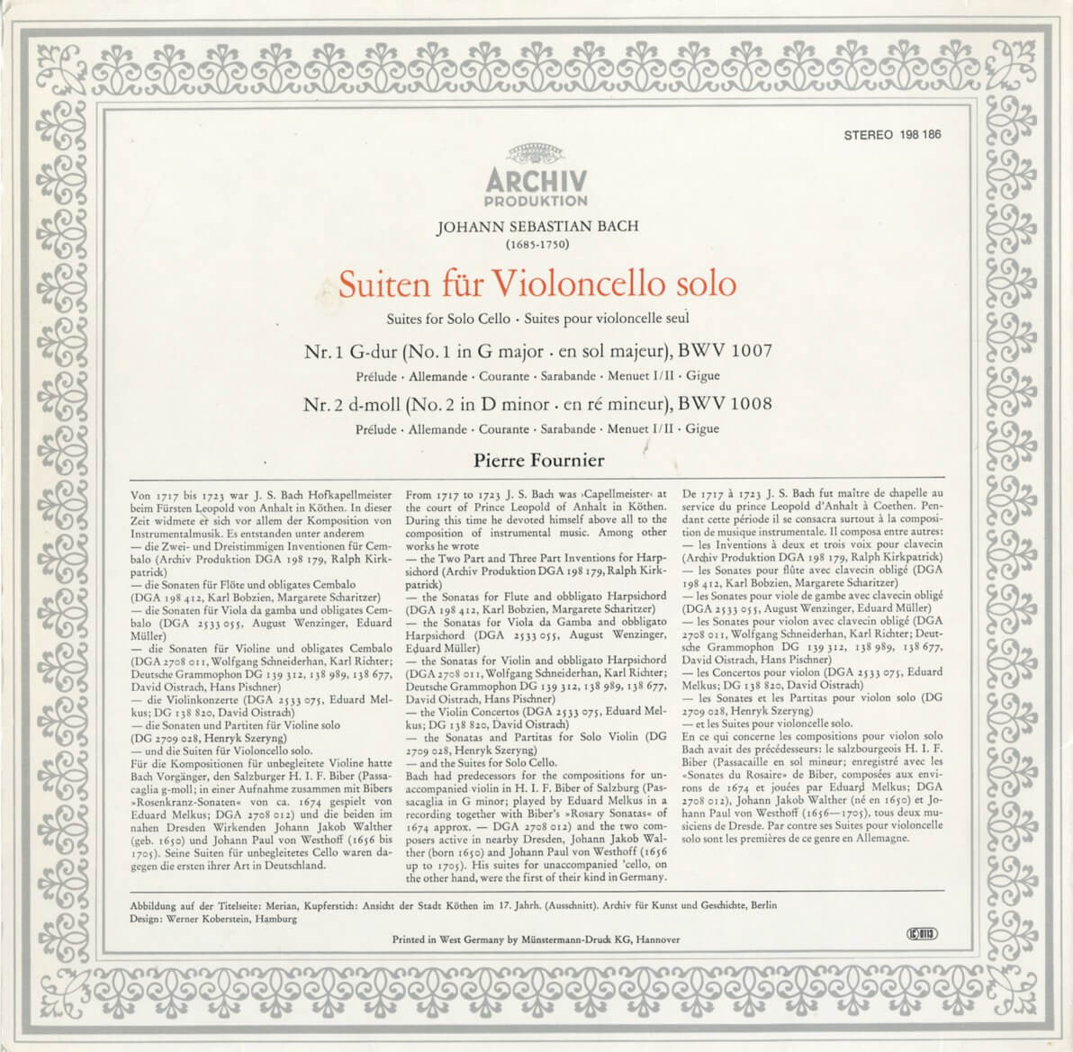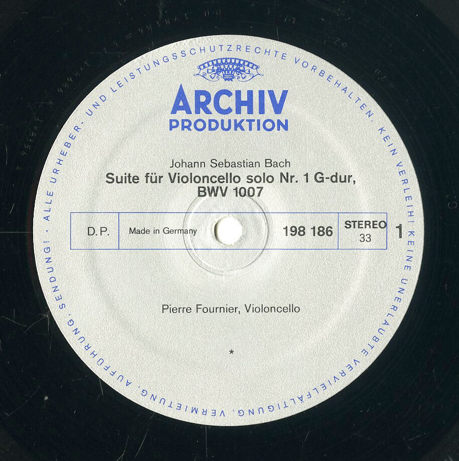 ピエール・フルニエ ヨハン・ゼバスティアン・バッハ 無伴奏チェロ組曲1-2番 DE ARCHIV 198 186