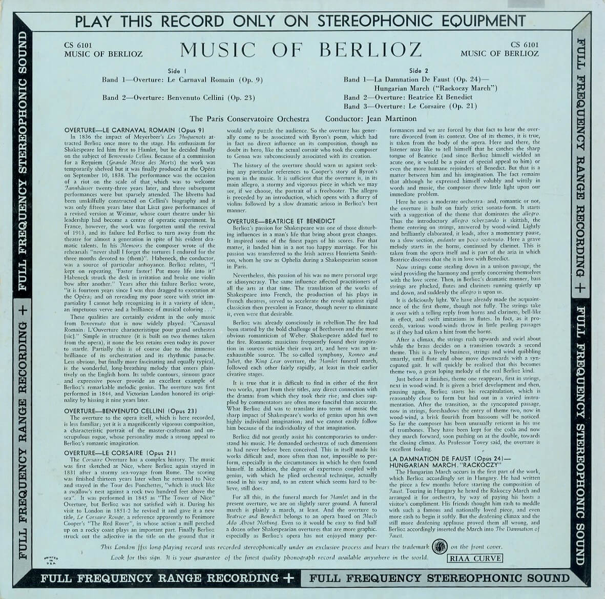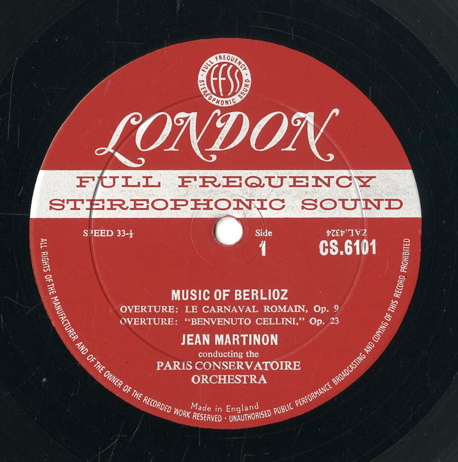 ジャン・マルティノン パリ音楽院管絃楽団 ベルリオーズ 序曲集 GB LONDON CS6101