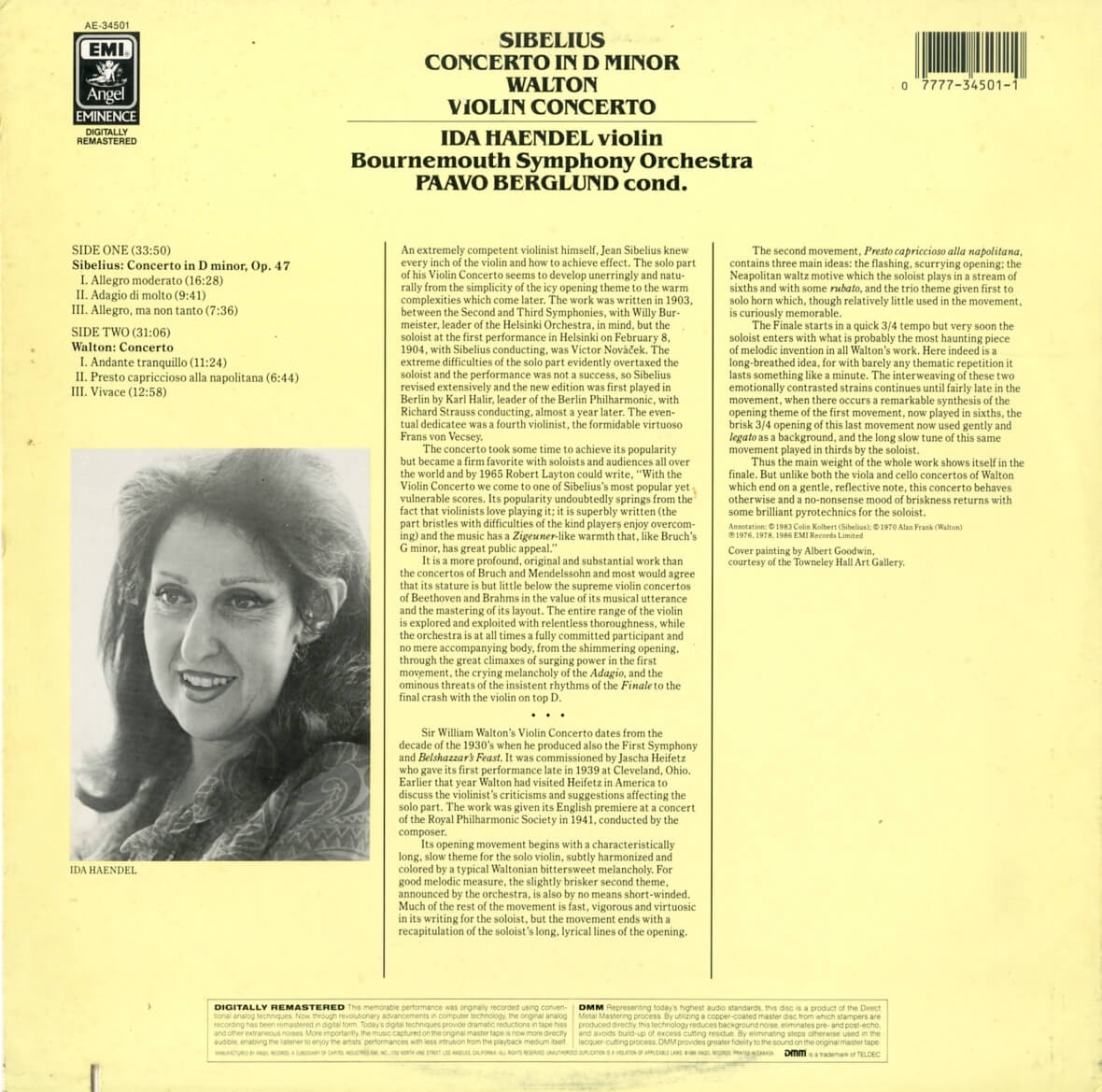 Ida Haendel, Bournemouth Symphony Orchestra, Paavo Berglund – Walton · Sibelius – Violin Concertos