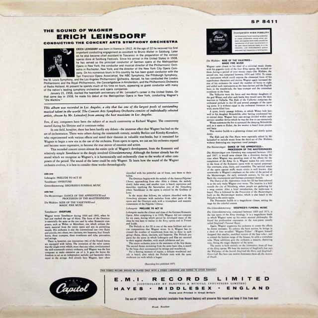 GB CAPITOL SP8411 エーリヒ・ラインスドルフ コンサート・アーツ交響楽団 ワーグナー・オペラ序曲集