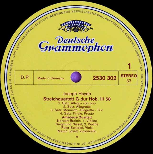 DE DGG 2530 302 アマデウス四重奏団 ハイドン・弦楽四重奏曲第42番ハ長調 作品54, No. 2, Hob.Ⅲ:57、弦楽四重奏曲第43番ト長調 作品54, No. 1, Hob.Ⅲ:58