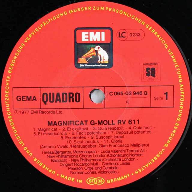 DE EMI 1C065-02 946 テレサ・ベルガンザ ルチア・ヴァレンティーニ=テッラーニ リッカルド・ムーティ ニュー・フィルハーモニア管弦楽団 ヴィヴァルディ 「マニフィカト」、「グローリア」 MAGNIFICAT&GLORIA