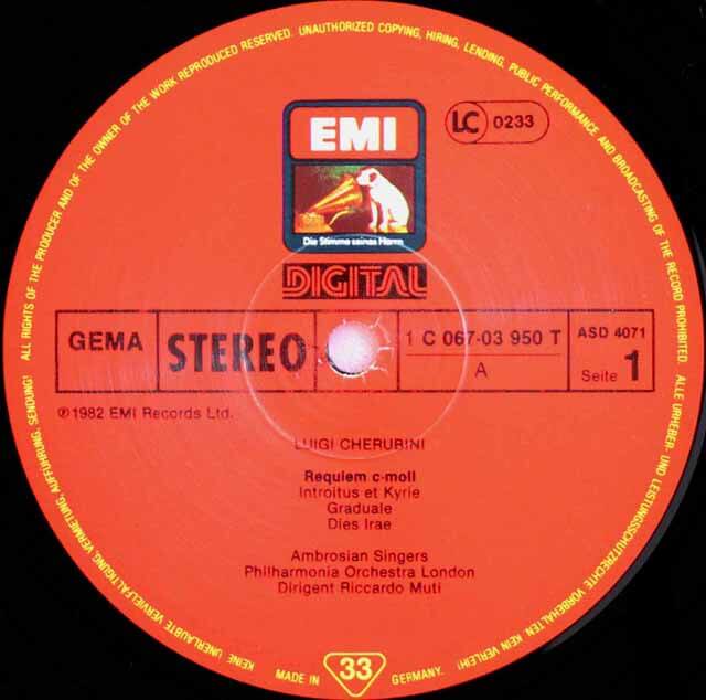 DE EMI 1C 067-03 950T リッカルド・ムーティ アンブロジアン・シンガーズ ニュー・フィルハーモニア管弦楽団 ケルビーニ レクイエム ハ短調