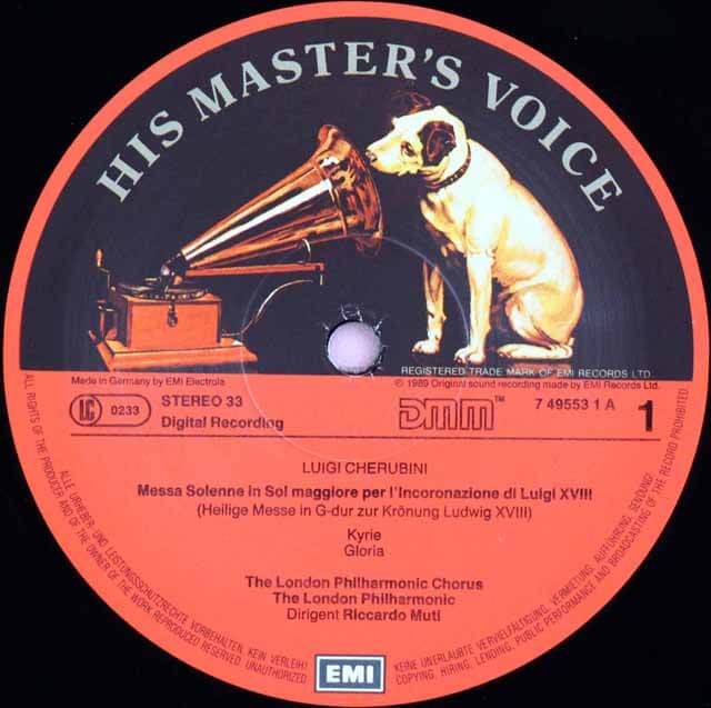 DE EMI 7 49553 1 リッカルド・ムーティ フィルハーモニア合唱団 フィルハーモニア管弦楽団 ケルビーニ シャルル10世の戴冠式のための荘厳ミサ曲
