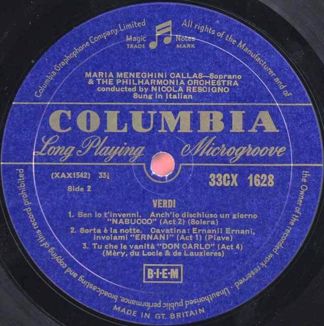 GB COLUMBIA 33CX1628 マリア・カラス ニコラ・レッシーニョ フィルハーモニア管弦楽団 ヴェルディのヒロインたち〜ヴェルディ オペラ・アリア集(イタリア語歌唱)