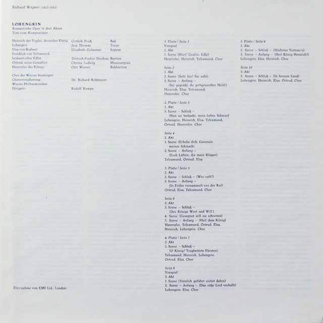 DE ETERNA 8 26 995/8 26 999 ルドルフ・ケンペ ジェス・トーマス エリーザベト・グリュンマー ウィーン・フィルハーモニー管弦楽団 ワーグナー ローエングリン