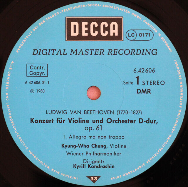 DE DECCA 6.42606 チョン・キョンファ キリル・コンドラシン ウィーン・フィルハーモニー管弦楽団 ベートーヴェン ヴァイオリン協奏曲 ニ長調 作品61