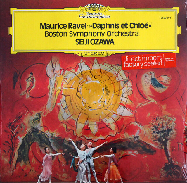- 大編成のオーケストラによって夢想的に描かれたラヴェルのバレエ音楽『ダフニスとクロエ』は、1974年10月に録音された。小澤がボストン響の音楽監督に就任して間もないころの録音。ドイツ・グラモフォンのカタログ・レパートリ拡充に大きく貢献した録音のひとつがこのラヴェル。