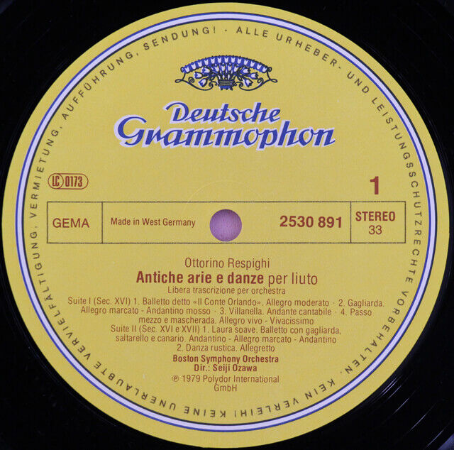DE DGG 2530 891 小澤征爾 ボストン交響楽団 レスピーギ リュートのための古風な舞曲とアリア