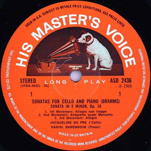 GB EMI ASD2436 ジャクリーヌ・デュ=プレ(チェロ)、ダニエル・バレンボイム(ピアノ) ブラームス・チェロ・ソナタ1番/2番