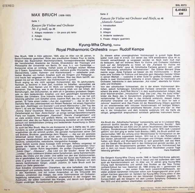 「 チョン、ケンペのブルッフ/ヴァイオリン協奏曲第1番ほか DE DECCA SXL6573 STEREO」を通販レコードとしてご案内します。