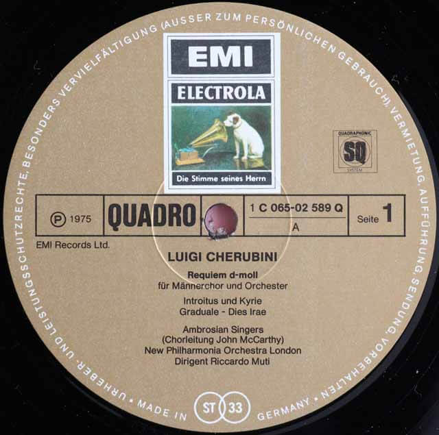 DE EMI ELECTROLA 1C065-02 589Q リッカルド・ムーティ アンブロジアン・シンガーズ ニュー・フィルハーモニア管弦楽団 ケルビーニ レクイエム ニ短調