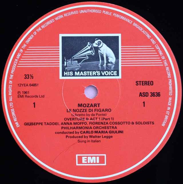 - ジュリーニが指揮した歌劇「フィガロの結婚」の全曲盤は、 エリザベート・シュヴァルツコップ、エーベルハルト・ヴェヒターのウィーン系に、アンナ・モッフォ、フィオレンツァ・コッソット、ジュゼッペ・タッデイ、ピエロ・カプッチッリらイタリア系と異なる趣向の歌手たちを見事に統率、融合させた若きジュリーニの棒の冴え。同じジュリーニの「ドン・ジョヴァンニ」と同じく、モーツァルトの歌劇のファースト・チョイスに相応しい、永遠の「フィガロの結婚」だ。