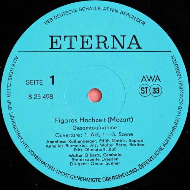 DE ETERNA 8 25 498/500 スイトナー&ドレスデン&ベリー&プライ モーツァルト・フィガロの結婚(全曲 ドイツ語歌唱)