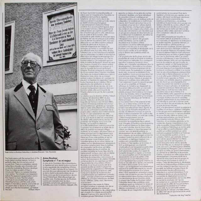 - ― ブルックナー・交響曲全集を2度録音しているオイゲン・ヨッフムですが、ヨッフムは若い頃からブルックナー作品に熱心に取り組み、やがてブルックナー協会総裁も務めるなど権威としてその名を知られるようになります。2度制作もした交響曲全集ほか、個別の録音も数多く存在しますが、特に「交響曲第7番」は数多くの録音を残している十八番の曲といえます。本盤は2度目の全集のために東ドイツまで出向き、美音の弦楽と木管セクションを持つシュターツカペレ・ドレスデンを指揮して、響きのビューティフルなルカ教会でセッション録音した晩年の演奏で、ブルックナー・スペシャリストのヨッフムの中でも代表的な名演。第2楽章アダージョの美しさは別格。その演奏は重厚で堂々たるスケールを持っていますが、十分に動的な要素にも配慮され、起伏の大きな仕上がりを示しているのが特徴でもあります。決してスタティック一辺倒なものでは無く、独墺でのさまざまなヴァージョンによる演奏など、数々の経験を膨大に蓄積したヨッフム晩年の方法論が反映された演奏として注目される内容を持っています。
