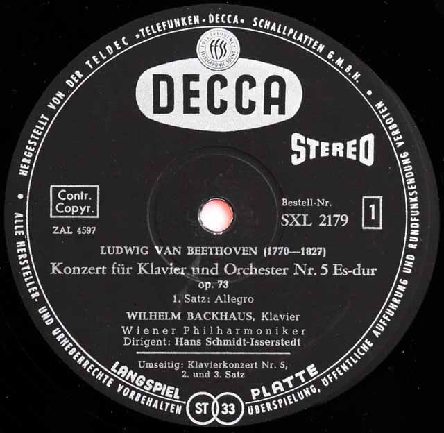 DE DECCA SXL2179 ヴィルヘルム・バックハウス ハンス・シュミット=イッセルシュテット ウィーン・フィルハーモニー管弦楽団 ベートーヴェン ピアノ協奏曲5番《皇帝》 BEETHOVEN EMPEROR