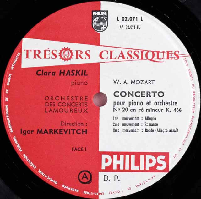 FR PHILIPS L02071L クララ・ハスキル イーゴリ・マルケヴィチ コンセール・ラムルー管弦楽団 モーツァルト ピアノ協奏曲20番 24番
