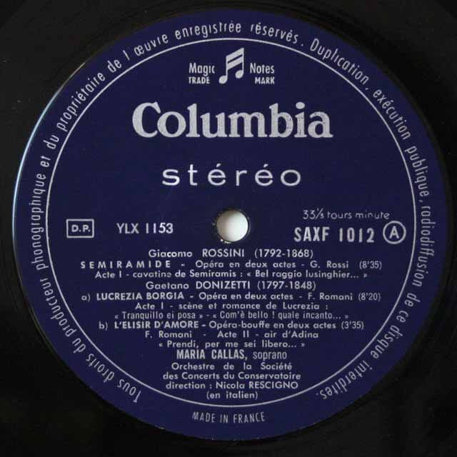 FR COLUMBIA SAXF1012 マリア・カラス ニコラ・レッシーニョ パリ音楽院管弦楽団 Callas sings Rossini and Donizetti arias