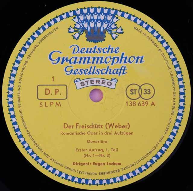 DE DGG 138 639/40 オイゲン・ヨッフム エベルハルト・ヴェヒター イルムガルト・ゼーフリート リタ・シュトライヒ バイエルン放送交響楽団 ウェーバー 歌劇「魔弾の射手」全曲