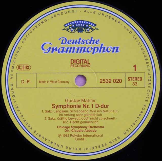 DE DGG 2532 020 クラウディオ・アバド シカゴ交響楽団 マーラー・交響曲第1番「巨人」