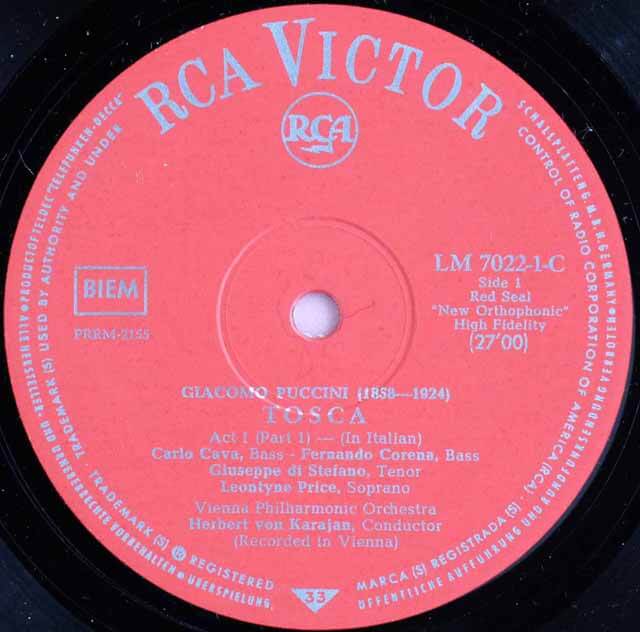 DE RCA LSC7022-1/7022-C レオンタイン・プライス ジュゼッペ・ディ・ステーファノ ジュゼッペ・タデイ フェルナンド・コレナ ヘルベルト・フォン・カラヤン ウィーン・フィル プッチーニ トスカ