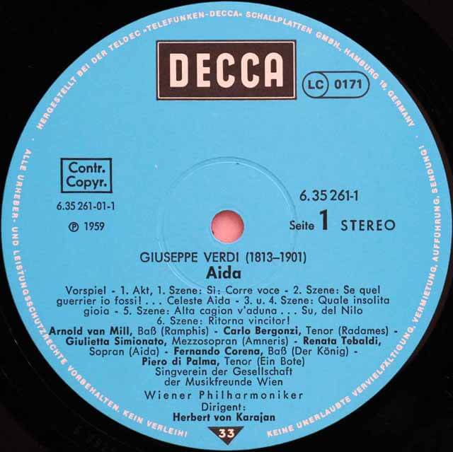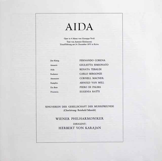 DE DECCA 6.35261-1/3 ヘルベルト・フォン・カラヤン レナータ・テバルディ カルロ・ベルゴンツィ コーネル・マクニール ジュリエッタ・シミオナート ウィーン・フィルハーモニー管弦楽団 ヴェルディ アイーダ