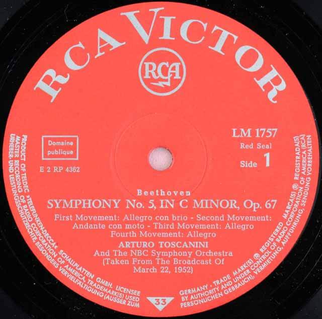 DE RCA LM-1757 – Arturo Toscanini, The NBC Symphony Orchestra – Beethoven – Symphonies Nos.5&8