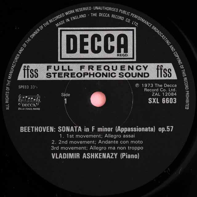 GB DECCA SXL6603 – Vladimir Ashkenazy – Beethoven – Sonata Op.57 in F minor “Appassionata”, Sonata Op.10 No.3 in D major