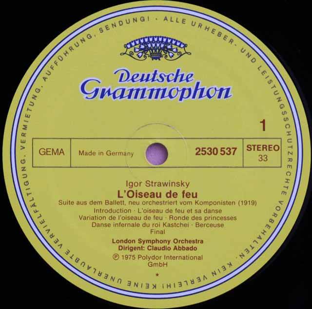 DE DGG 2530 537 クラウディオ・アバド ロンドン交響楽団 ストラヴィンスキー 組曲「火の鳥」