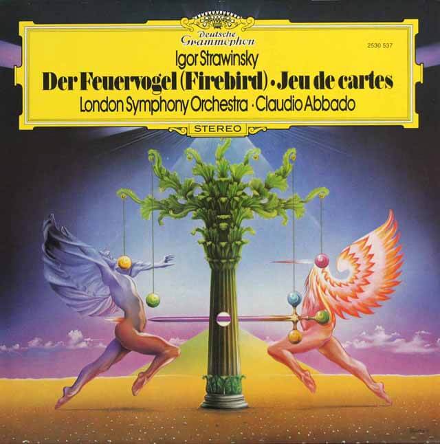 「カルタ遊び」 - 出世作で印象主義的原始主義時代の代表作「火の鳥」と新古典主義時代の軽妙かつ洒脱な「カルタ遊び」。クラウディオ・アバドのレパートリーの幅広さを見せつけたアナログ盤の技術の完成期に、繊細な音まで記録できるデジタルの衝撃を感じたレコードだった。千変万化する複雑なリズムの緻密なエクセキューション、完璧に統御されたオーケストラ・バランス、鮮やかな色彩感、そして何よりも、しなやかで柔軟性に富んだ身のこなしによって、ストラヴィンスキーのバレエ曲の最も純音楽的で洗練度の高い演奏の一つとして高く評価され、ジャケットのサイケデリックなイラストとともに音楽ファンに強い印象を残しています。