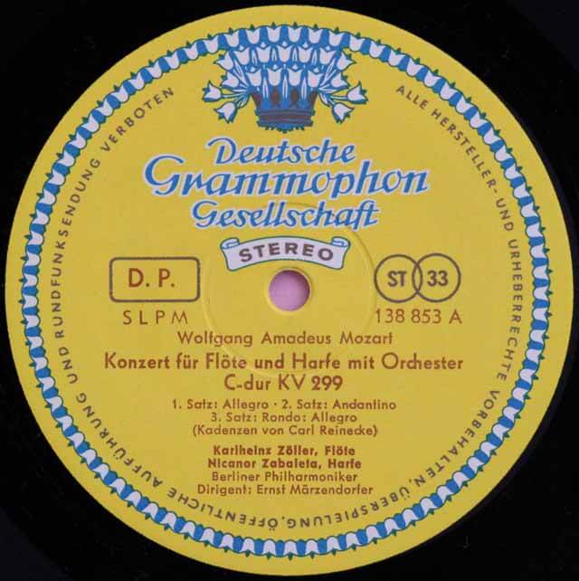 DE DGG LPM18 853 ニカノール・サバレタ カールハインツ・ツェラー エルンスト・メルツェンドルファー ベルリン・フィルハーモニー管弦楽団 モーツァルト フルートとハープのための協奏曲 ライネッケ ハープ協奏曲