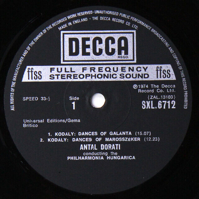 極みのヴィンテージ名盤GB DECCA SXL6712 アンタル・ドラティ フィルハーモニア・フンガリカ コダーイ 管弦楽曲集